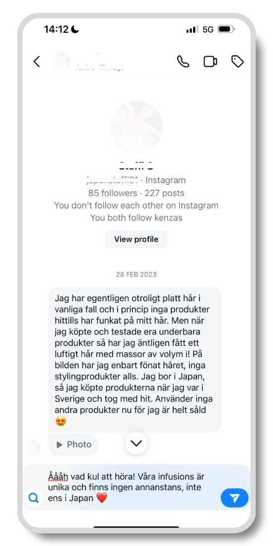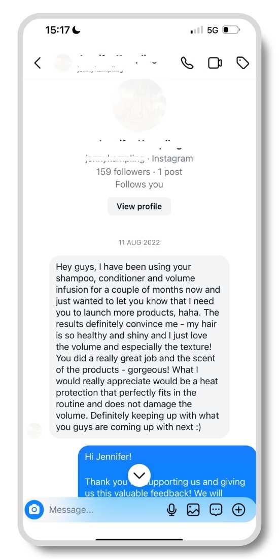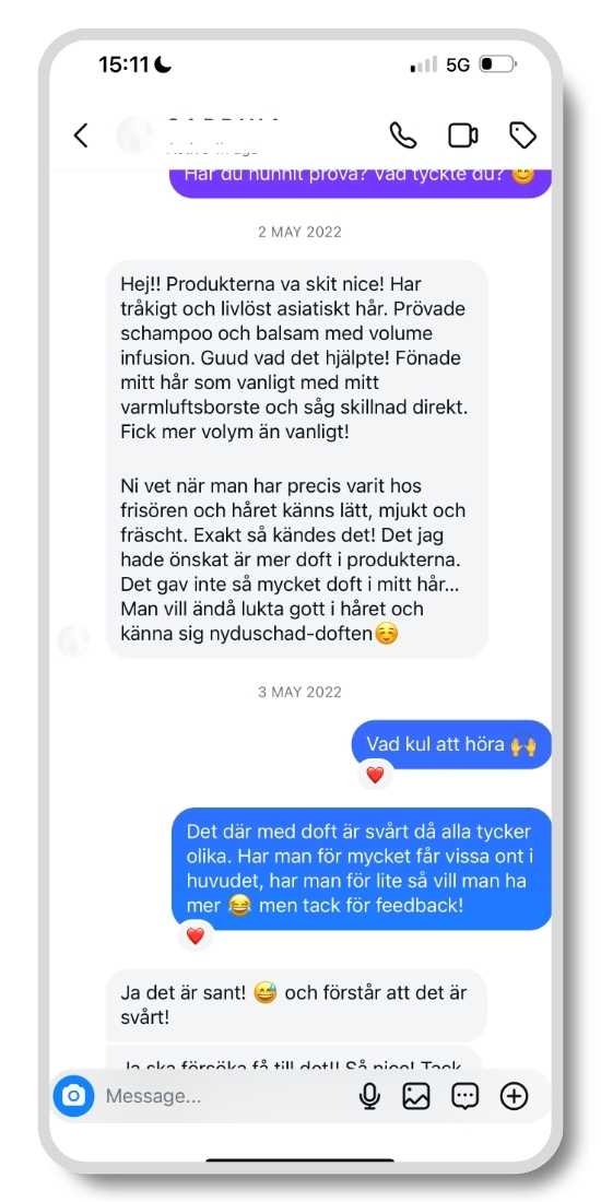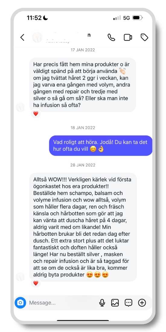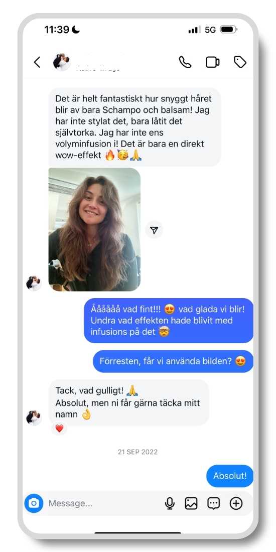Hyaluronsyra, med sin exceptionella förmåga att binda fukt, ger ditt hår intensiv hydrering och stärker dess struktur. Den tillför volym och glans, samtidigt som den skyddar mot uttorkning och skador, för ett hår som strålar av hälsa och skönhet.